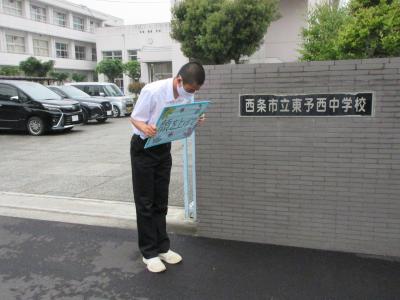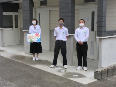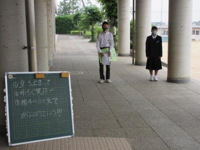2021年5月19日 08時07分生徒会は、年間を通して「あいさつ日本一」を目指してあいさつ運動を行っています。今週は環境委員会も加わりあいさつをしています。「立ち止まって」「明るく笑顔で」「相手の目を見て」を基本に行っています。