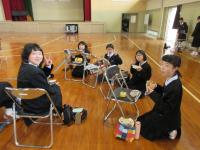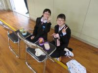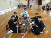 こちらは1年生。体育館でピクニック風(?)に食べています。