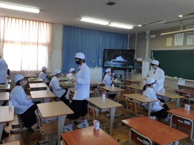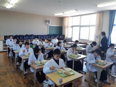 ※ 1年生は44人なので教室と隣の会議室とに分かれて給食を食べています。「いただきます。」も