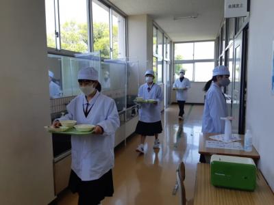 先週月曜日の給食初日はやり方を覚えるのに四苦八苦しながら配膳していた給食も今はほとんど先生からの指示もなく、きちんと素早く配膳できるようになりました。
