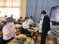 今日は、ICT支援員の先生が来校し、教科と連動したプログラミングを教えていただきました。