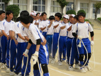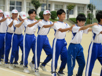 体育大会まであと2日。運動場では3年生が「THE MUKADE」の練習に励んでいました。