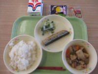 給食中の放送では、「ビーフンに入っているたけのこはどこの部分を食べているでしょう。」というクイズが出されました。
