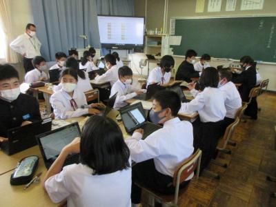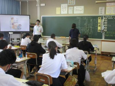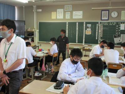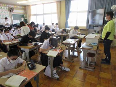 教育実習生、学年の先生全員参加していました。若い先生も授業力のアップを目指しています。