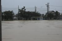2021年7月12日 17時03分本日午後3時ごろから大きな雨雲に覆われ、突然雷雨が襲ってきました。グラウンドは一瞬にして湖となりました。
