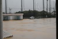 本日午後3時ごろから大きな雨雲に覆われ、突然雷雨が襲ってきました。グラウンドは一瞬にして湖となりました。