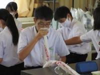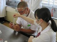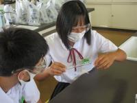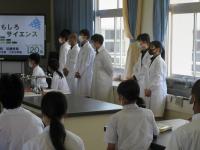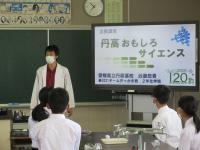 本日、3年生は3,4時間目に丹原高校の先生と生徒が来校し「丹高おもしろサイエンス」の授業をしてくれました。楽しい実験や高校のお話、丹原高校体験入学のPRなど行ってくれました。
