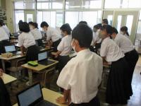 本日、1,2年生は5校時、西消防署の方が来られて救急救命講習を行いました。今回の講習は保健室から1年生、2年生をteamsでつなぎリモートで行いました。講習のあと救命入門確認テストをGoogle Foamで行ったり、心肺蘇生の方法を教えてもらったりしました。