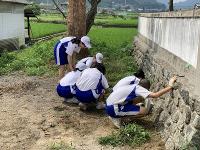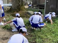 安用の分団会では、布都神社の草引きをしました。なんとごみ袋12袋分の草を引きました。本当によく頑張りました。